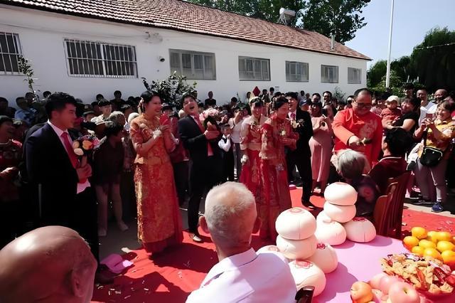 现场还发生了暖心趣事,大嫂因三人长相太过相似,当场认错丈夫,引得全场会心一笑,爷爷更是亲笔题写对联,一句句祝福藏满长辈心意,让这场婚礼更显温情。