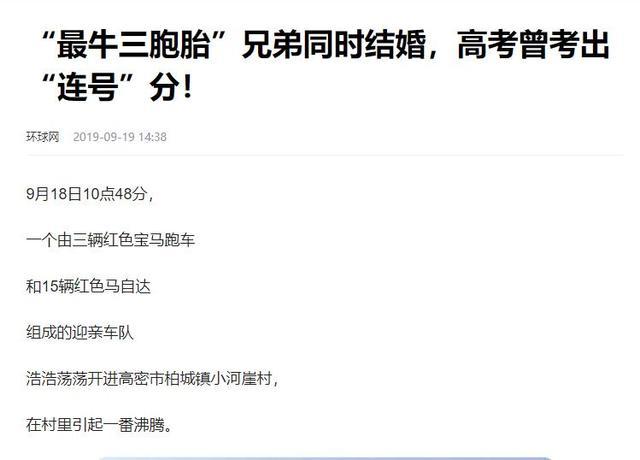 2009年,山东三胞胎高考考出了616,617,618的连号分数,并且被同一211大学所录取。